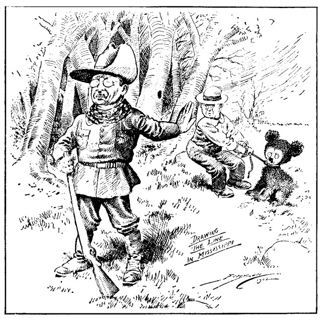В 1902 году c Рузвельтом произошел забавный инцидент. Во время охоты в Миссисипи президент не смог поймать ни одного медведя, и его спутники, чтобы развлечь президента, поймали молодого мишку и привязали его к дереву, предлагая Рузвельту застрелить его. Однако президент отказался и пощадил животное.