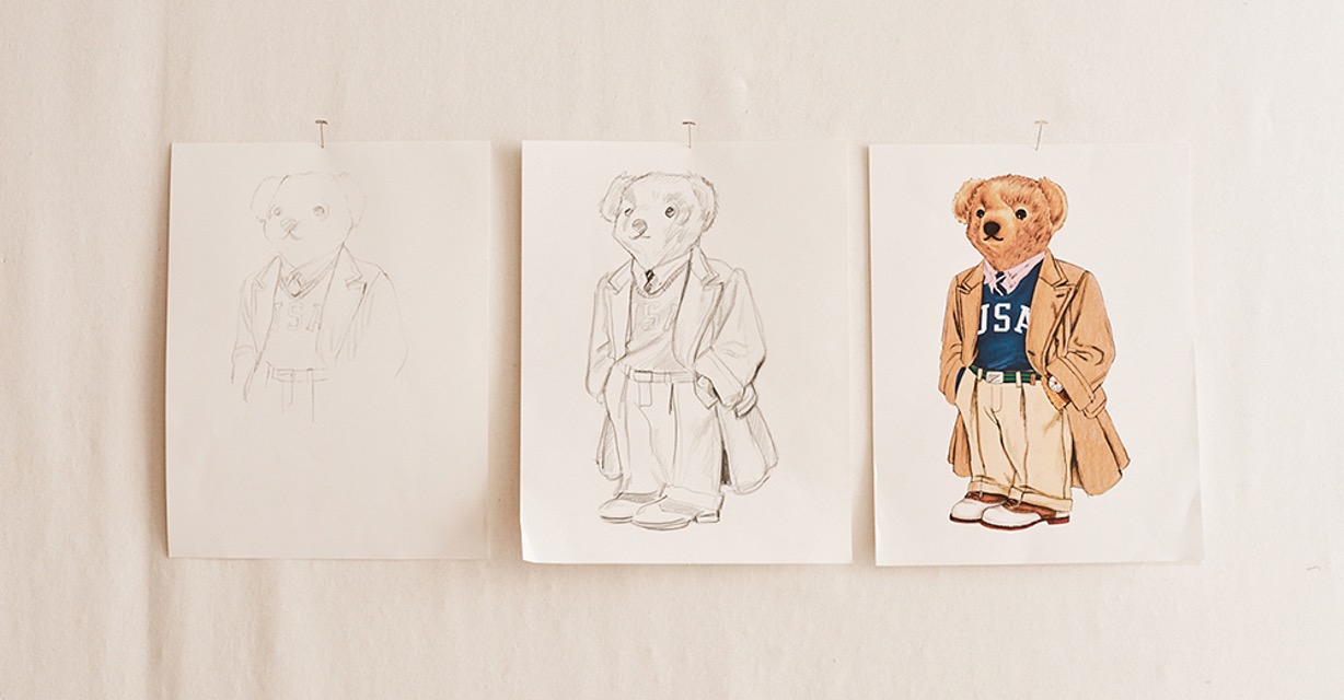 В 1991 году изображение мишки в свитере с американским флагом было вручную вышито на свитере линейки Polo Ralph Lauren. Модель появилась в двух цветах — красном и темно-синем — и имела огромный успех. За этим последовали другие образы: расслабленный любитель мартини, изысканный гольфист в жилетке Fair Isle, лыжник, бейсболист. Каждый мишка олицетворял определенный стиль жизни — элегантный, аристократичный, знающий толк в удовольствиях.