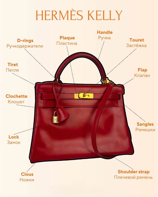 6. Плечевой ремень (Shoulder Strap) –  съемный длинный ремень для Kelly, позволяющий носить сумку на плече или через плечо.