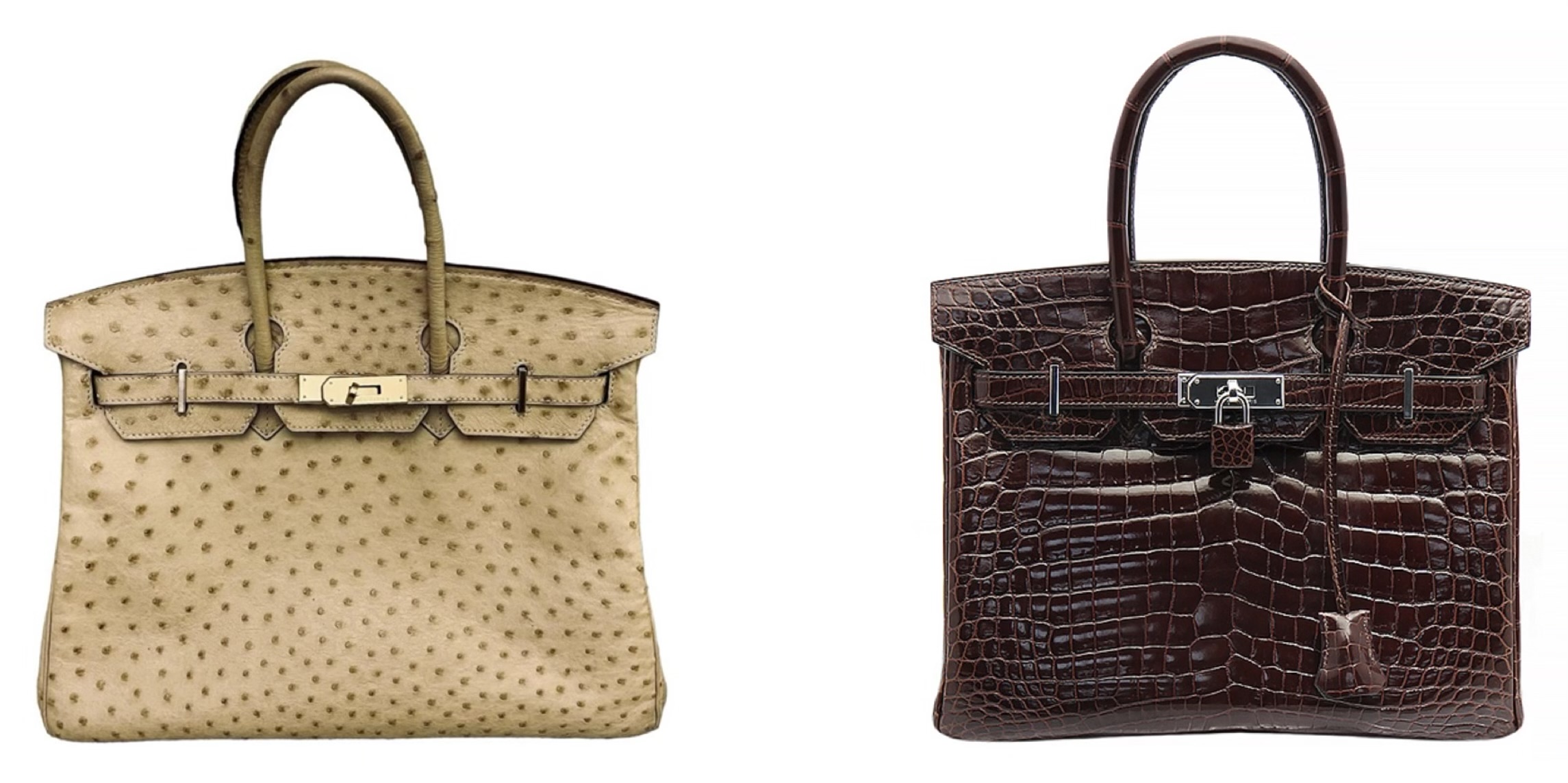 Hermes Birkin 35 из кожи страуса         Hermes Birkin 30 из кожи крокодила