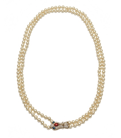 Эффектный и символичный браслет от культового американского бренда Ciner — украшение с характером и выразительной подачей. Две линии жемчуга создают классическую, благородную основу. Мягкое перламутровое сияние придает образу утонченность и женственность, а аккуратная симметрия нитей делает браслет универсальным и элегантным. Главный акцент — застежка в виде головы змеи. Этот выразительный элемент добавляет украшению драматичности и символизма. Змея — знак мудрости, защиты и внутренней силы. Детализированная проработка и металлический блеск подчеркивают статусность изделия и фирменное качество исполнения.