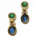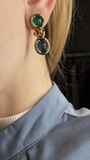 Элегантные винтажные клипсы от Grosse — пример утончённой геометрии и безупречной работы с цветом. Лаконичная форма подчеркнута гладкой золотистой оправой и выразительными стеклянными кабошонами насыщенных оттенков — изумрудного и глубокого синего. Двухуровневая композиция придаёт украшению динамику и делает его заметным, но сдержанным акцентом. Минимализм формы в сочетании с насыщенными цветами создаёт баланс между классикой и характерным винтажным настроением. Клипсы легко интегрируются в повседневный гардероб, добавляя образу глубину и цвет, и также органично смотрятся в вечерних сочетаниях.